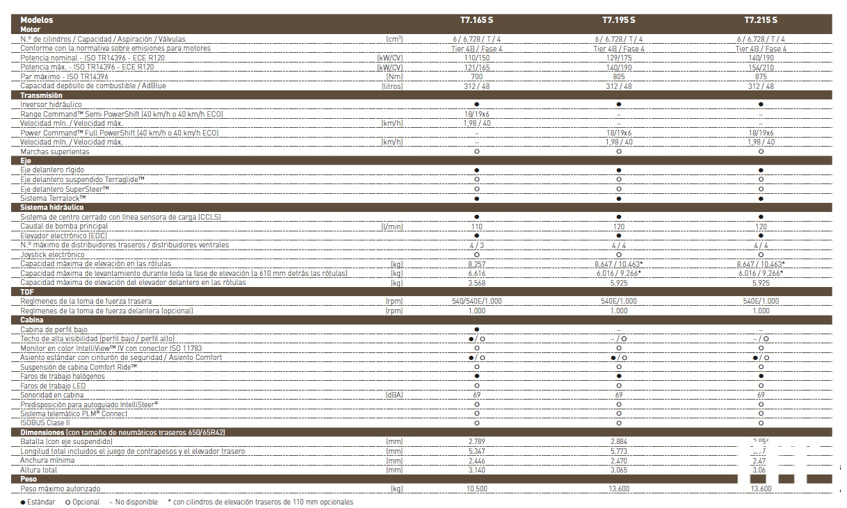 | Specific equipment | Front suspended axle |